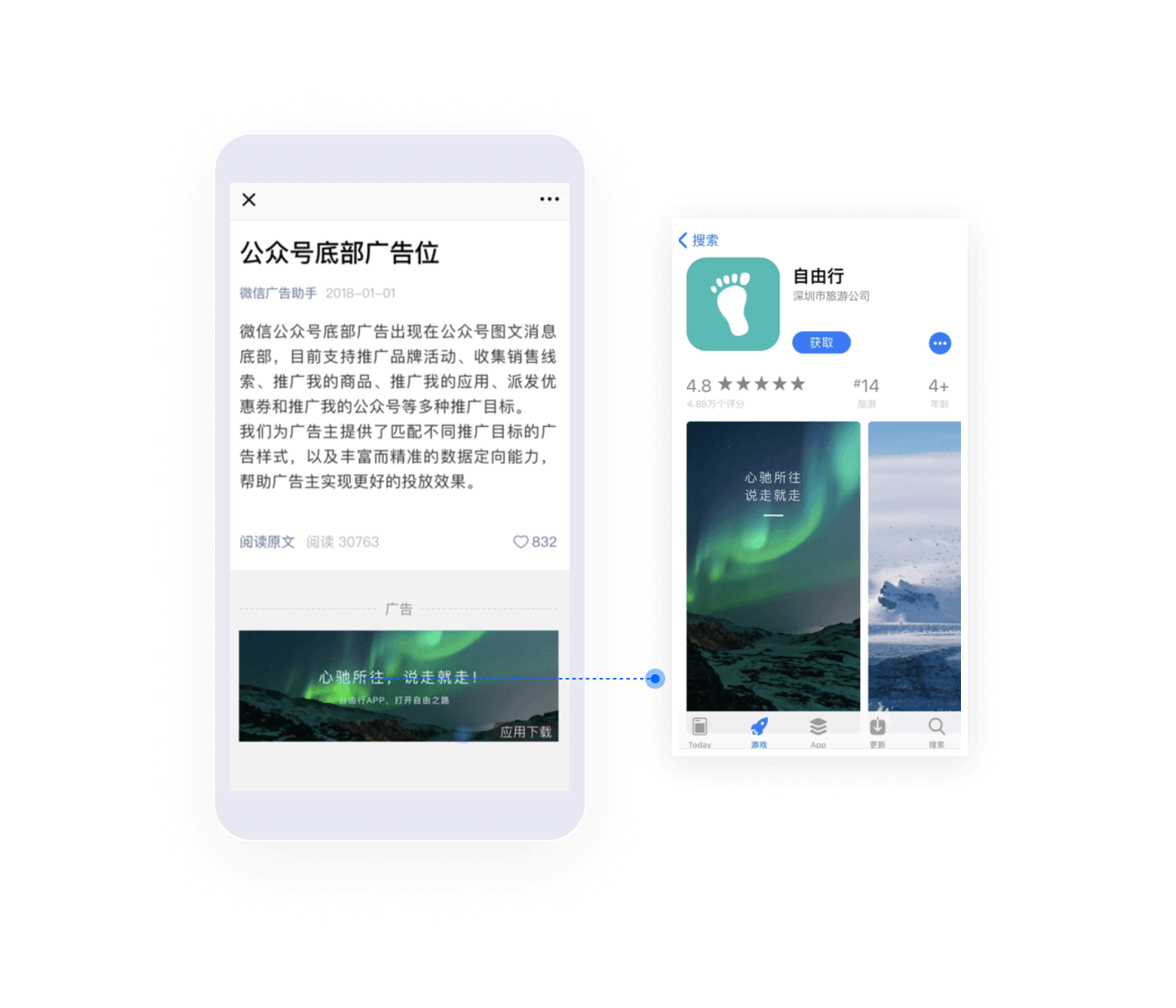 是基于微信公眾平臺生態(tài),以類(lèi)似公眾號文章內容的形式在包括文章底部、文章中部、互選廣告和視頻貼片等四個(gè)廣告資源位進(jìn)行展示的內容廣告。