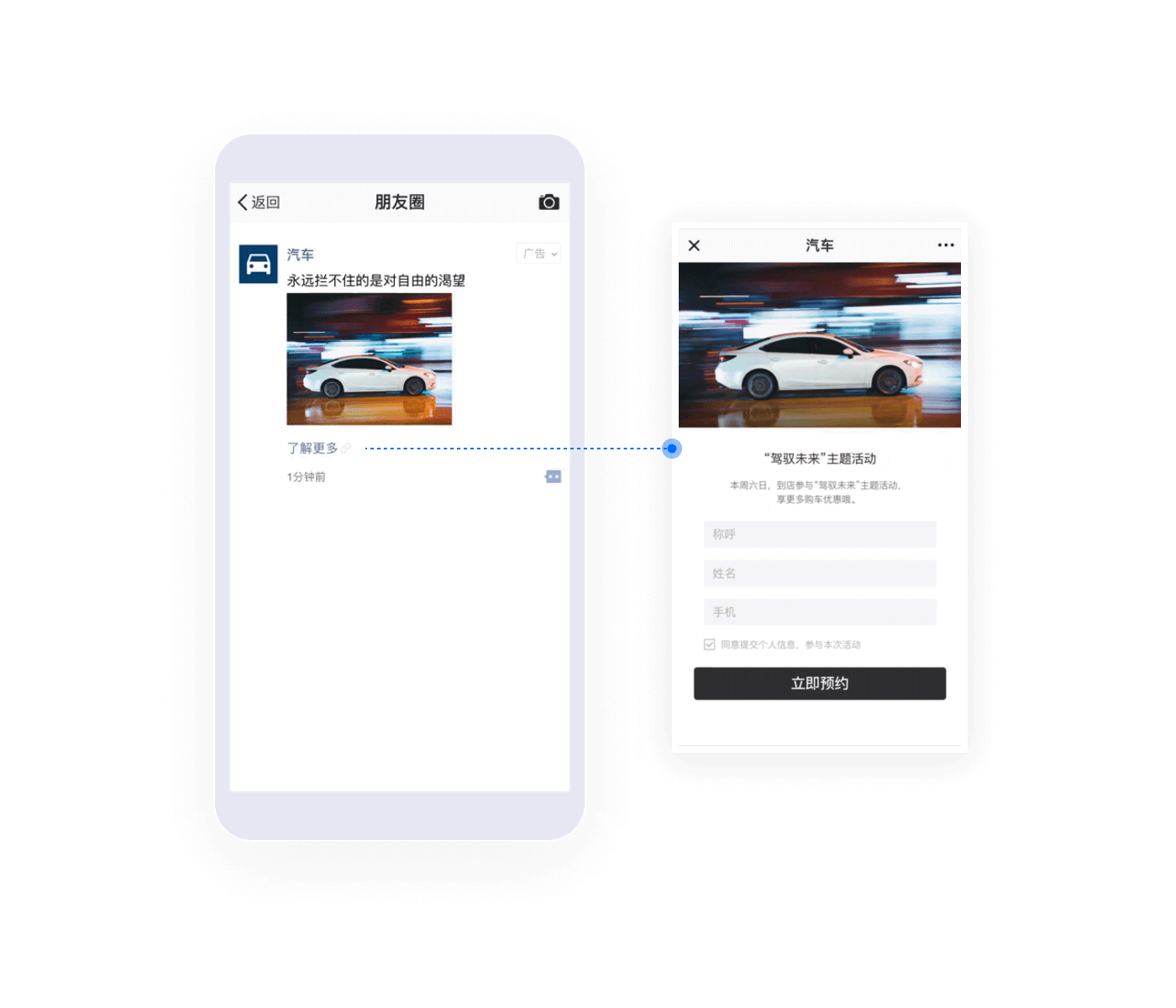 讓用戶(hù)更便捷的了解您的業(yè)務(wù),同時(shí)高效收集意向客戶(hù)銷(xiāo)售線(xiàn)索,以更可控的成本獲取更高的效益。特別適合如教育、婚紗、汽車(chē)4S店等行業(yè)。