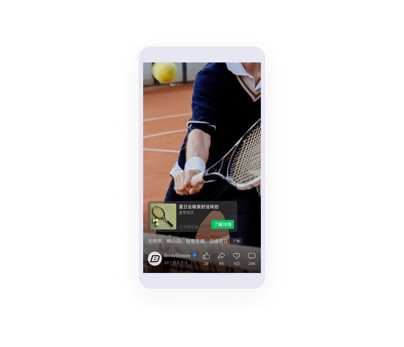 視頻號原生廣告提供沉浸式原生視頻體驗,幫助品牌在新品上市、節日營(yíng)銷(xiāo)、代言人官宣等營(yíng)銷(xiāo)場(chǎng)景,更好地進(jìn)行產(chǎn)品呈現和理念表達