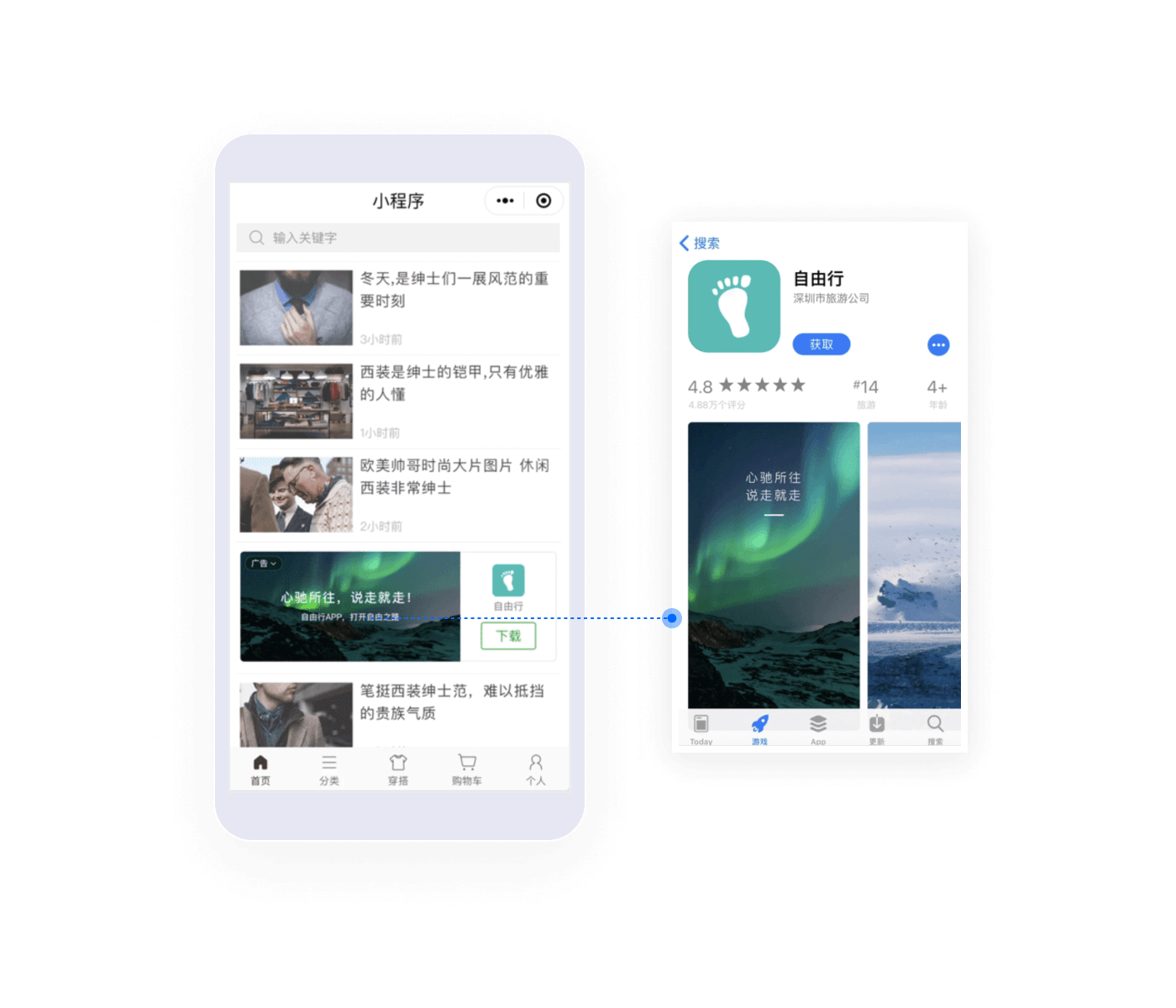 便捷推廣iOS及安卓移動(dòng)應用,支持應用一鍵下載,應用直達能力幫助廣告主輕松實(shí)現應用內轉化。